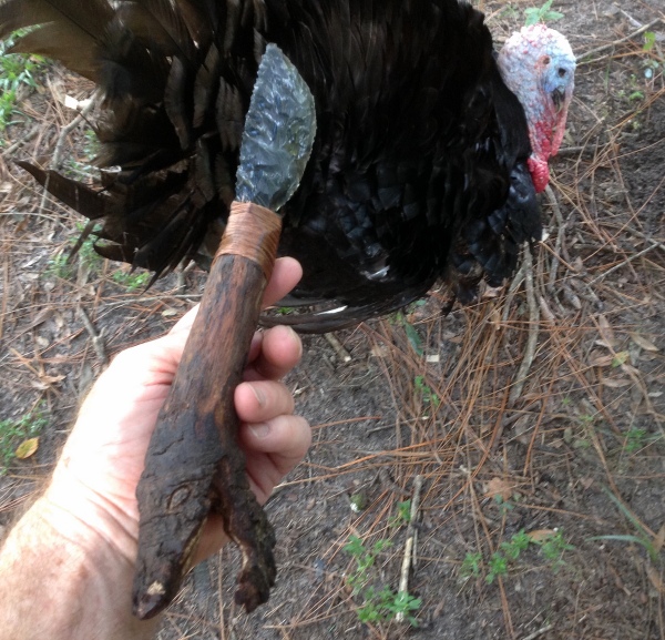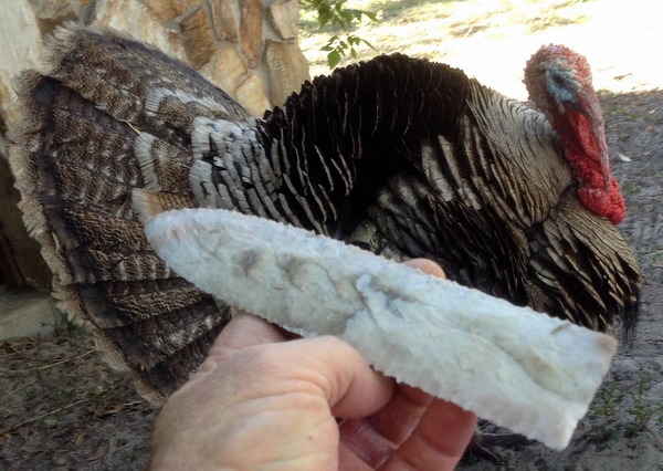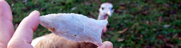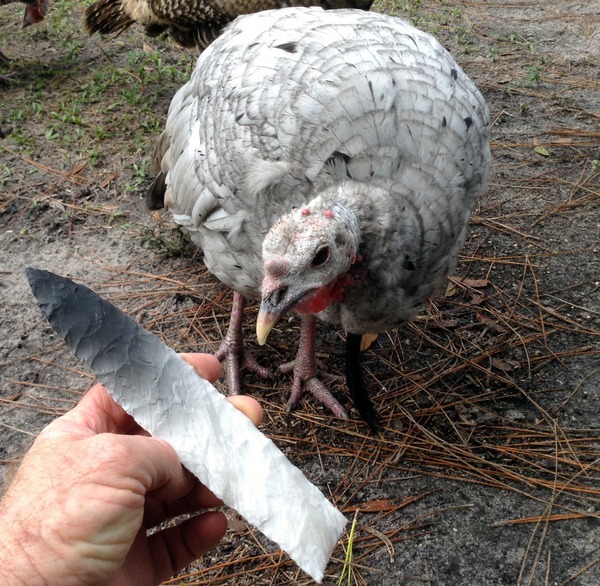 And often while chipping out an arrowhead or knife, the turkeys, every curious are my companions, chirping with inquisitiveness and scratching at flakes and tools.
